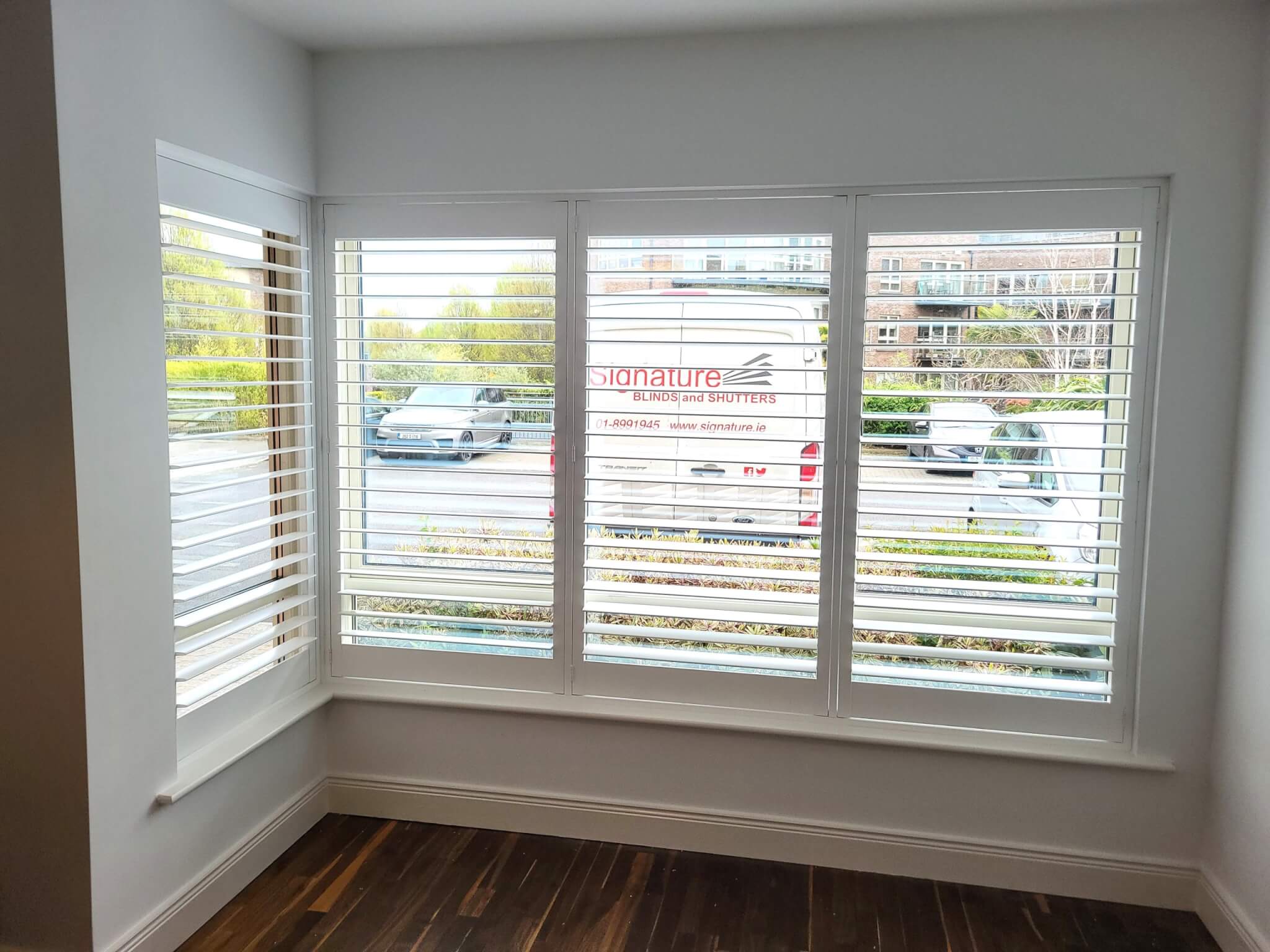 L Shaped Bay Windows fitted with Solid Wood Shutters in Terenure